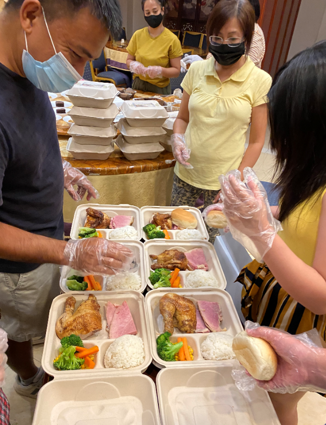 The meals included roast chicken, ham, rice, vegetables, bread, fruit, cake/pie and water. Relief bags were also provided to the recipients.