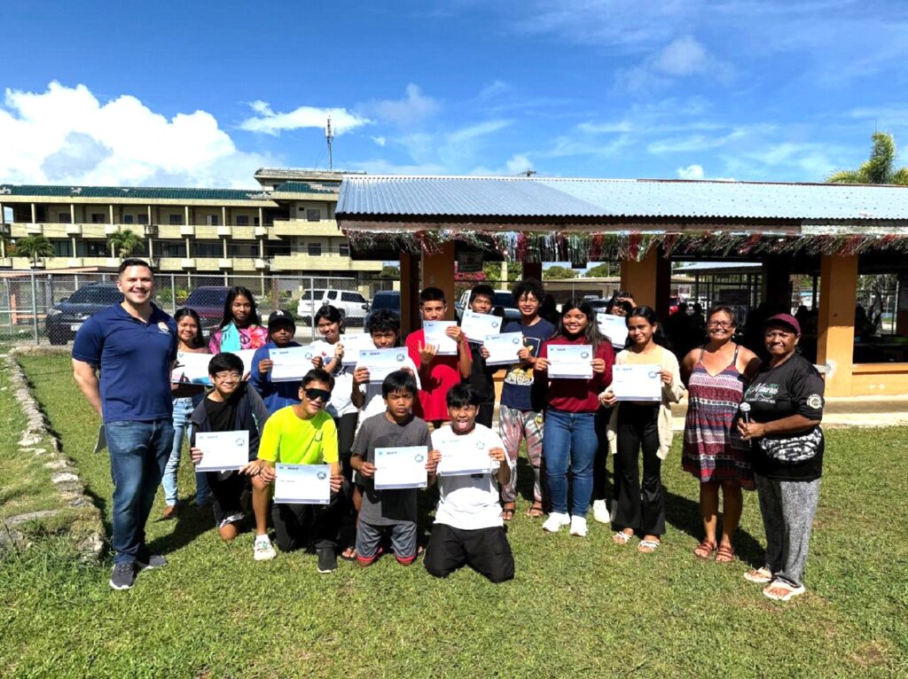 They are seventh graders Caliann Camacho, Camille Caponpon, Treyvaughn Castro, Jason De Leon, Aljess Echaluce, Francine Esefou, Aaleyah-Melisa Fatialofa, William Flores, Demitric Francisco, Reddick Leon Guerrero, Tommy Martinez, Reekeath Rengiil, Jayvin Reyes, Mia Rogopes, Jesus Daniel San Nicolas, Tyler Santos, Muntaha Sumaya and Daimion Tudela.