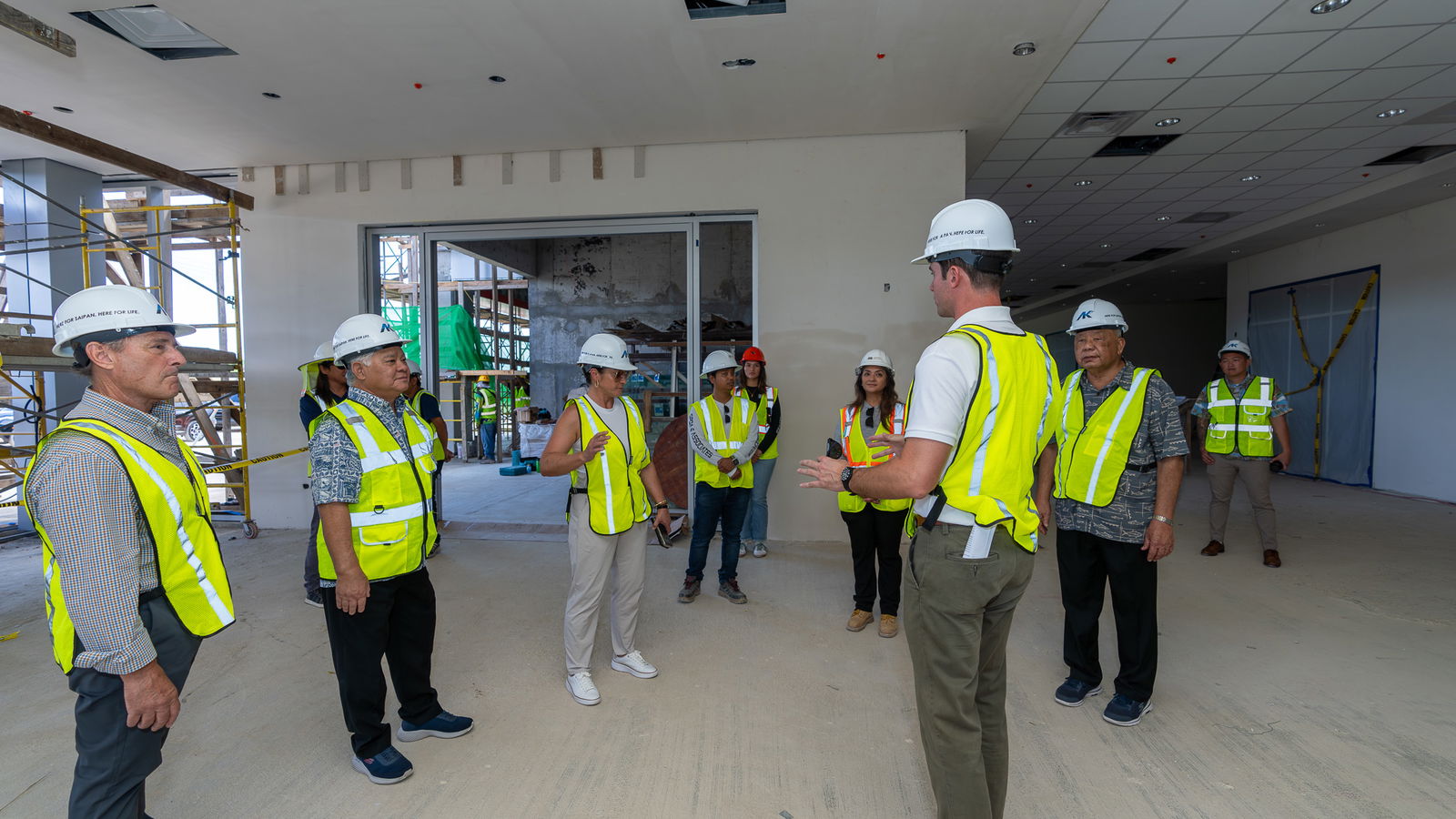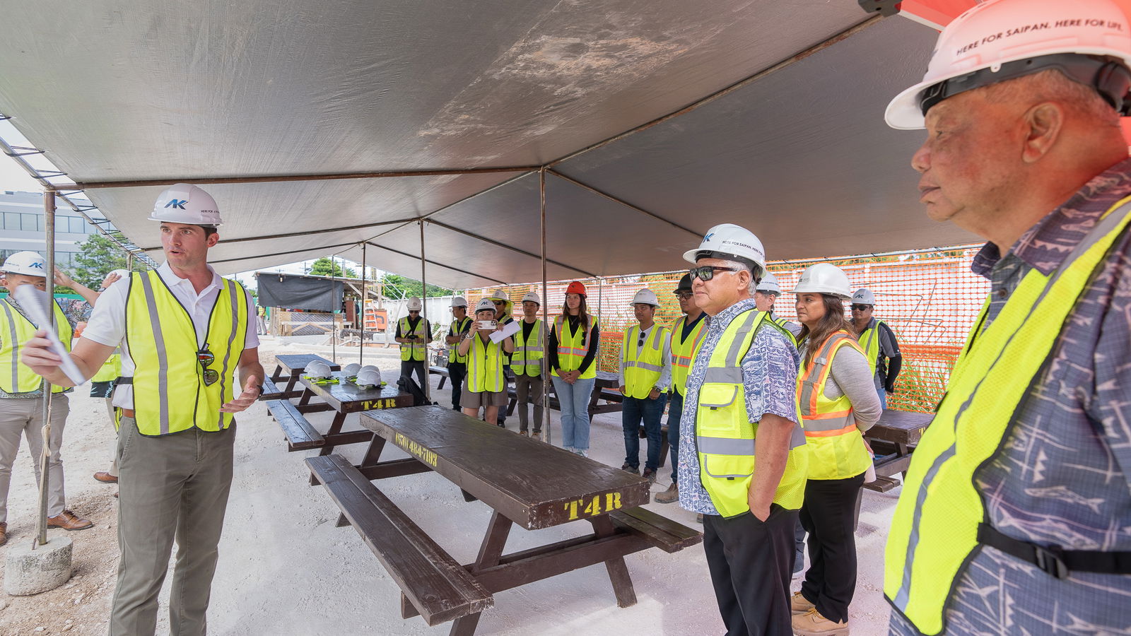 Gov. Arnold I. Palacios and Lt. Gov. David M. Apatang tour the construction site of the future Atkins Kroll Saipan Toyota and Lexus Dealership facility on Chalan Pale Arnold in Puerto Rico. Also in photo are Tracy Guerrero, AK Saipan’s newly appointed general manager; Clark Boswell, AK general manager and vice president for Guam and Saipan; and Neil Paynter, principal architect for Ari Partners Architecture. The $23 million project, which broke ground in March 2023, covers an area of 43,800 square feet. Atkins Kroll anticipates a soft opening by November. Governor Palacios said investments from companies like Atkins Kroll bring additional optimism and confidence in the development and growth of the local economy. AK said the new dealership and service center will be the first of its kind in the CNMI, and will allow residents to experience a world-class facility right here at home. Employees will also experience state-of-the-art equipment, which will further improve their skillsets.