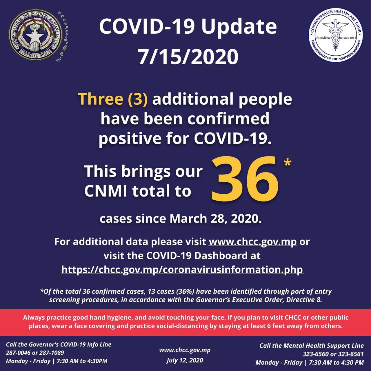 This brings the current CNMI case count to 36 since March 28, 2020.