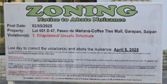 According to Youn, on February 5, 2025, the Saipan Zoning Office posted a public “Notice to Abate Nuisance” on the building, officially citing it as a “Dilapidated/Unsafe Structure.”
