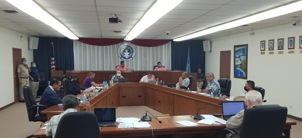 The House-Senate conference committee discusses the fiscal year 2021 budget late Tuesday evening in the Senate chamber. Photo by K-Andrea Evarose S. Limol