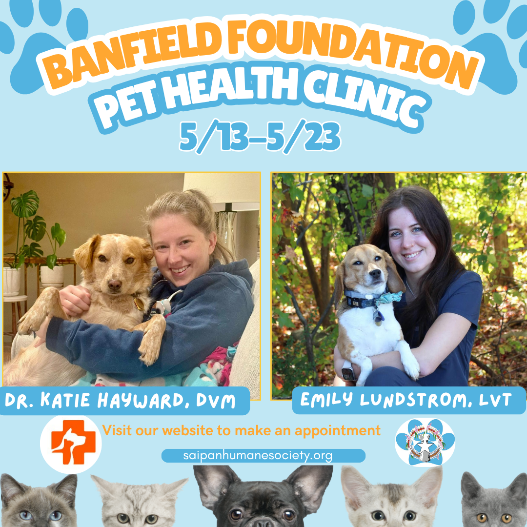 THE Saipan Humane Society is pleased to welcome Dr. Katie Hayward and Certified Veterinary Technician Emily Lundstrom — visiting from the Banfield Foundation — for a special veterinary clinic running May 14 through 22. SHS offers wellness exams and sick consultations for pet owners across the island.