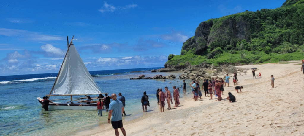 The Quintanilla-built canoe rests on the shore of Tagachang Beach during the first Yona Water Festival.