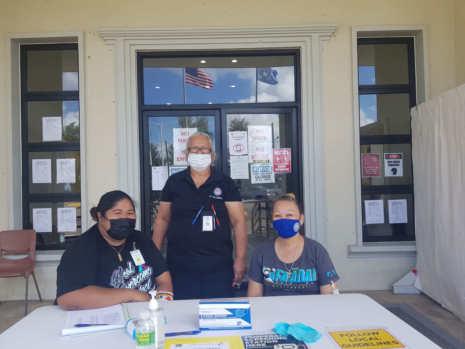 Commonwealth Election Commission Executive Director Julita Villagomez poses with poll workers at the multi-purpose center on Thursday. Photo by Bryan Manabat