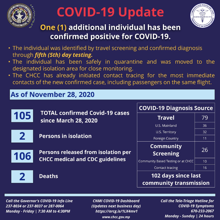 CHCC: 1 new Covid-19 case