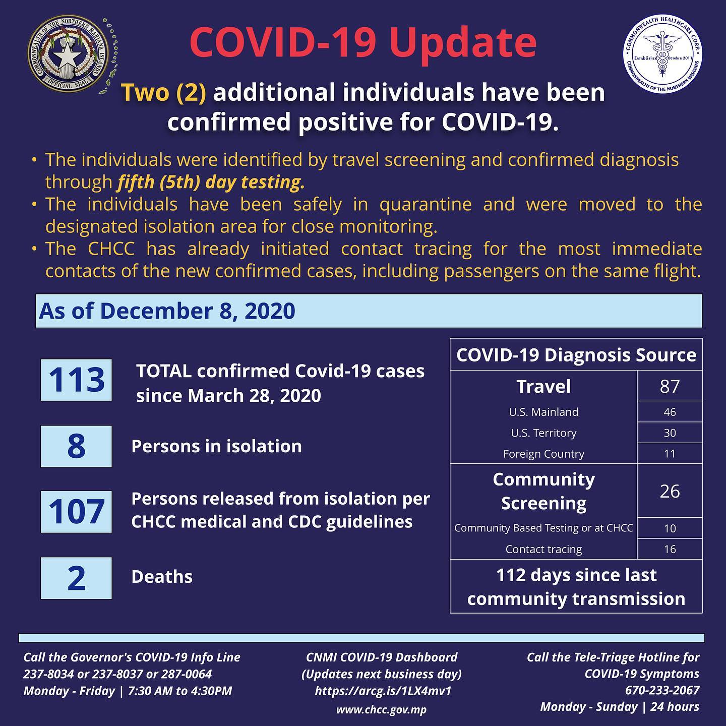 This brings the total reported cases in the CNMI to 113 since March 28, 2020.