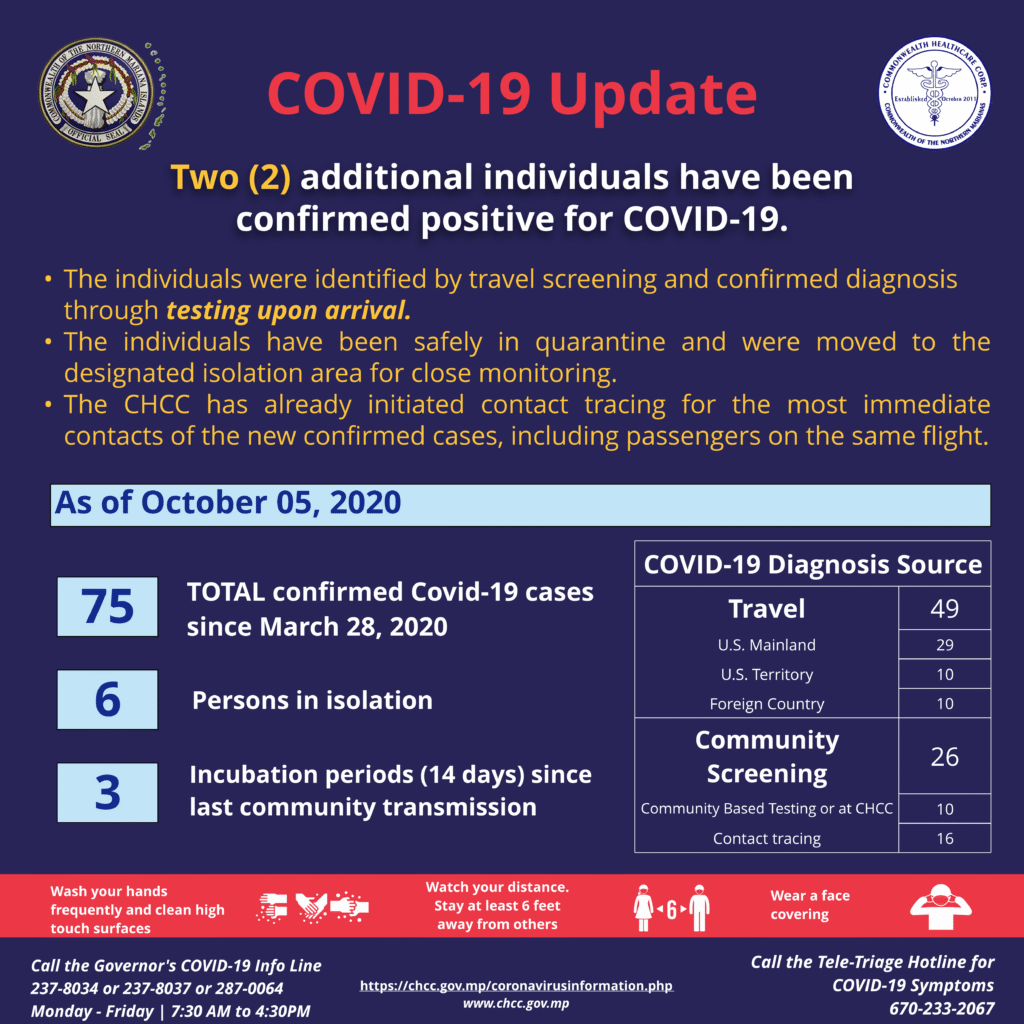 CHCC: 2 new Covid-19 cases