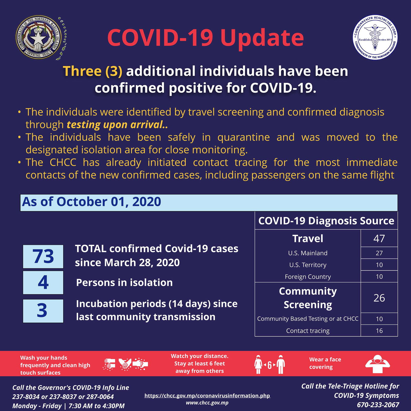 These new cases bring the CNMI total to 73 since March 28, 2020.