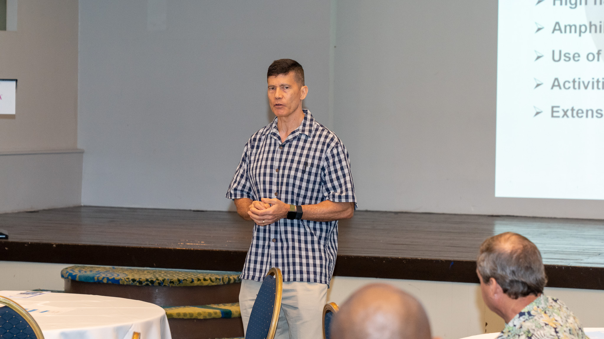 The Office of the Governor’s Commonwealth Bureau of Military Affairs, alongside Marine Forces Pacific, Indo-Pacific Command, and Joint Region Marianas held a series of CNMI Joint Military Training meetings with departments and agencies from the Commonwealth to dialogue about the updated Environmental Impact Statement Description of Proposed Action and Alternatives on the Tinian Divert Airfield. The revised EIS will reflect significant changes proposed in response to the 2015 EIS. Notable changes included the removal of Pagan from the proposal, no use of artillery, no aviation delivery munitions on Tinian, no amphibious ramps, no special use air space, significantly reduced range footprint, expanded non-military access, and co-use of the Military Lending Act. In attendance were MARFORPAC Executive Director Maj. Gen. Mark A, Hashimoto, Special Assistant for Military Affairs Daniel I. Aquino, Tinian Mayor Edwin P. Aldan, the Tinian Legislative Delegation, Tinian Municipal Council Chairman Joseph E. Santos, Office of Insular Affairs Field Representative Harry C. Blanco, cabinet officials, and partnering departments and agencies.