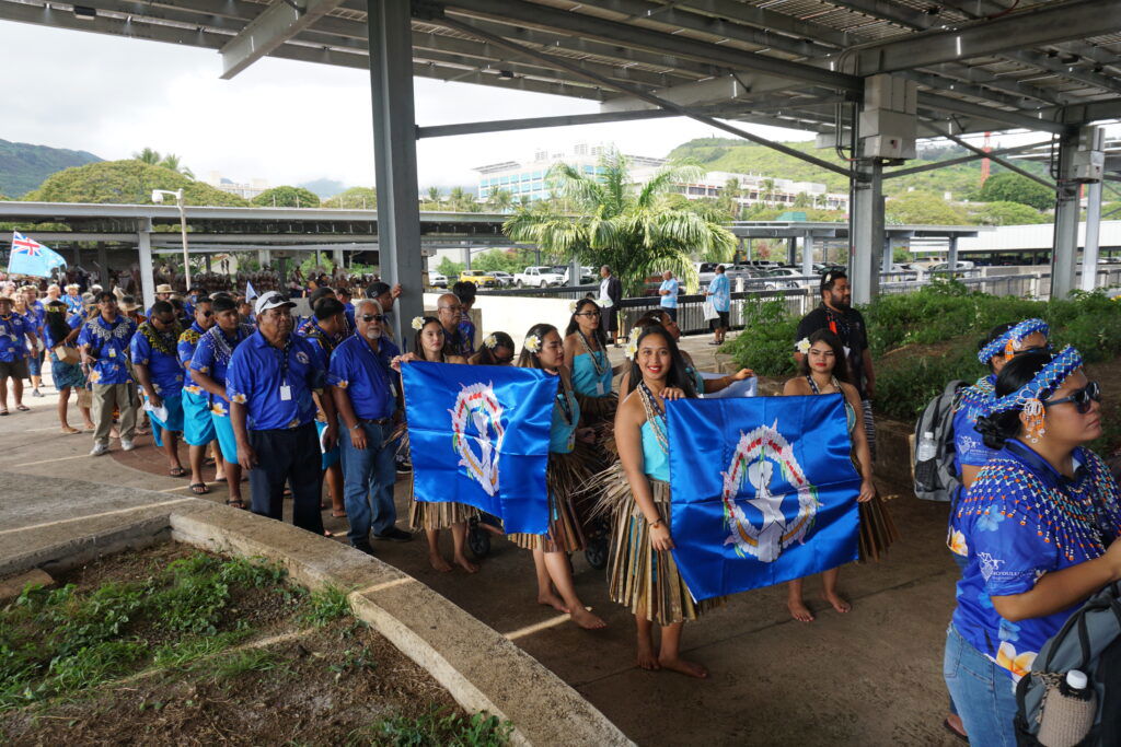 “May this festival be a testament to the beauty and resilience of our cultures,” a member of the delegation said. “In the Marshall Islands they dropped 67 nuclear weapons. They destroyed our way of life, they relocated our people, and yet we still have our culture, we still have our language, we’re still here!”