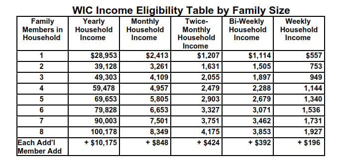 THE CNMI WIC Programs Income Eligibility Guidelines have been updated effective July 3, 2025. WIC is available to CNMI’s pregnant, breastfeeding, postpartum women, infants and children under the age of five who are at nutritional risk and who are at or below 185 percent of the federal poverty guidelines. A pregnant woman is considered two family members or more if pregnant with multiples.
