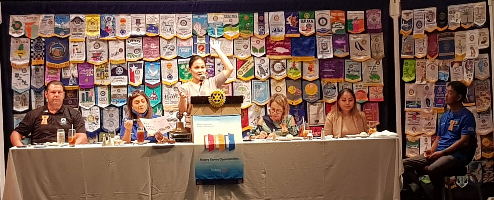 Reyna Saures, Community Guidance Center director, and Mia Jones, suicide prevention specialist, talk about suicide cases in the CNMI during the Rotary Club of Saipan meeting at the Hyatt Regency. Also in the photo are club president Sonya Dancoe, president-elect Sean Ficke, club secretary Irene Holl, and club vice president Wendell Posadas. Photo by Junhan B. Todino