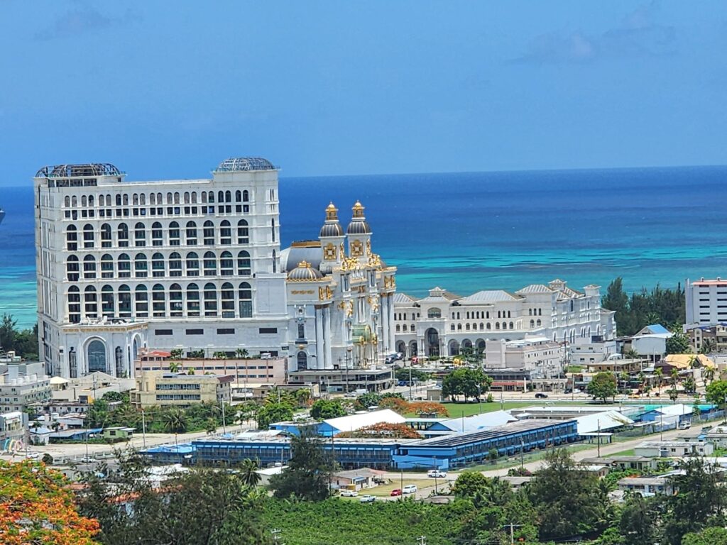 The unfinished Imperial Pacific International Hotel-Casino in Garapan as seen from Navy Hill.