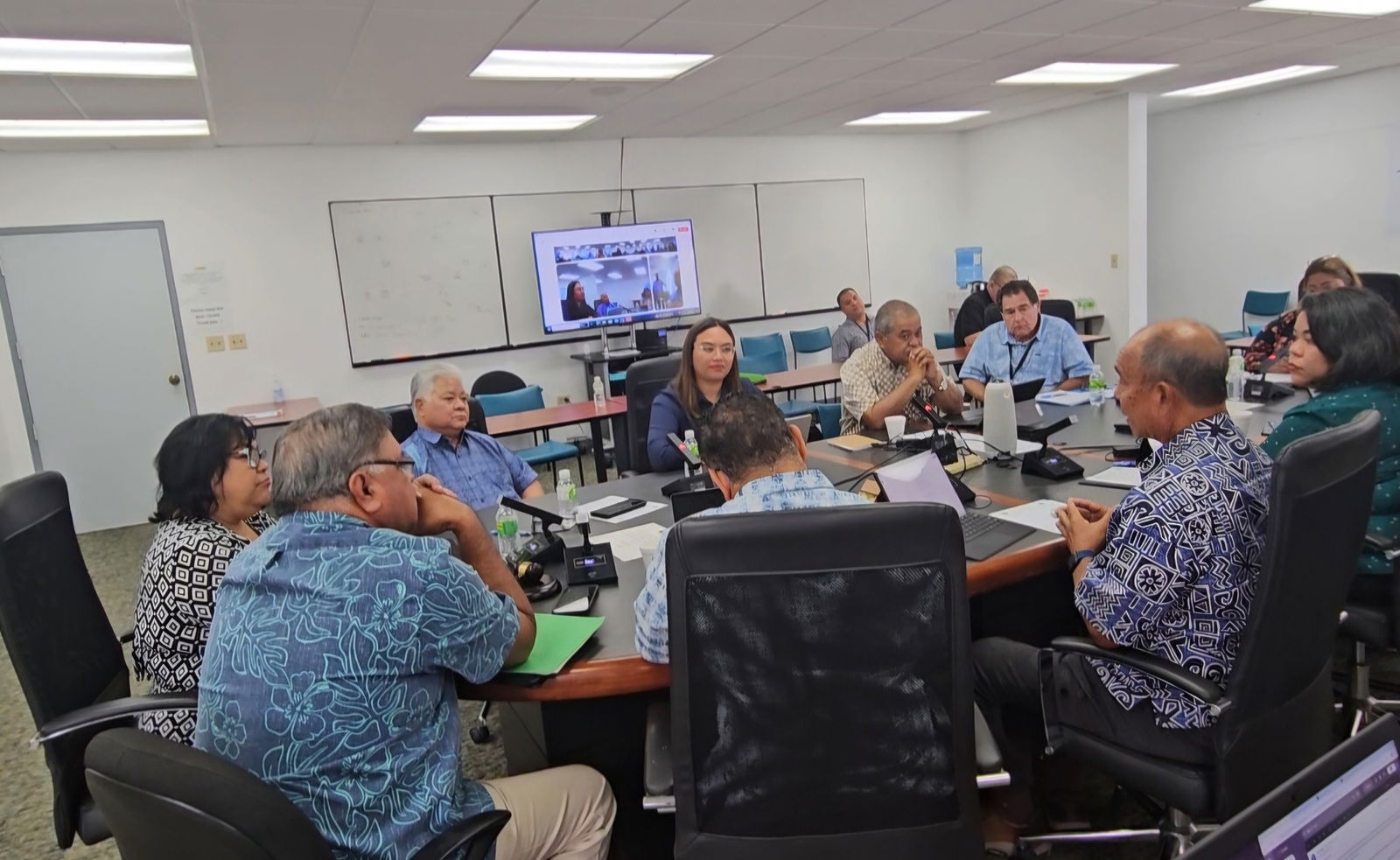 Gov. Arnold I. Palacios and Finance Secretary Tracy Norita meet with the Commonwealth Utilities Corporation board members and other officials on Thursday.