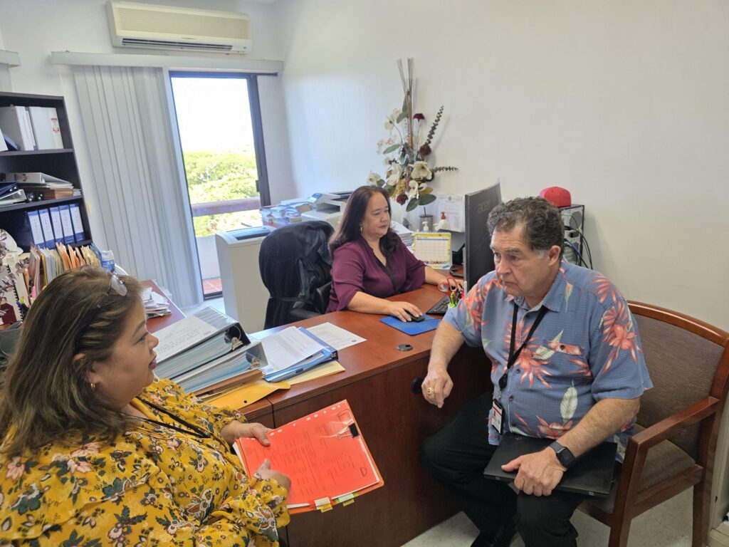 CUC Executive Director Kevin Watson, right, with Chief Financial Officer Betty Terlaje, left, and Betty Diaz, CUC management analyst.