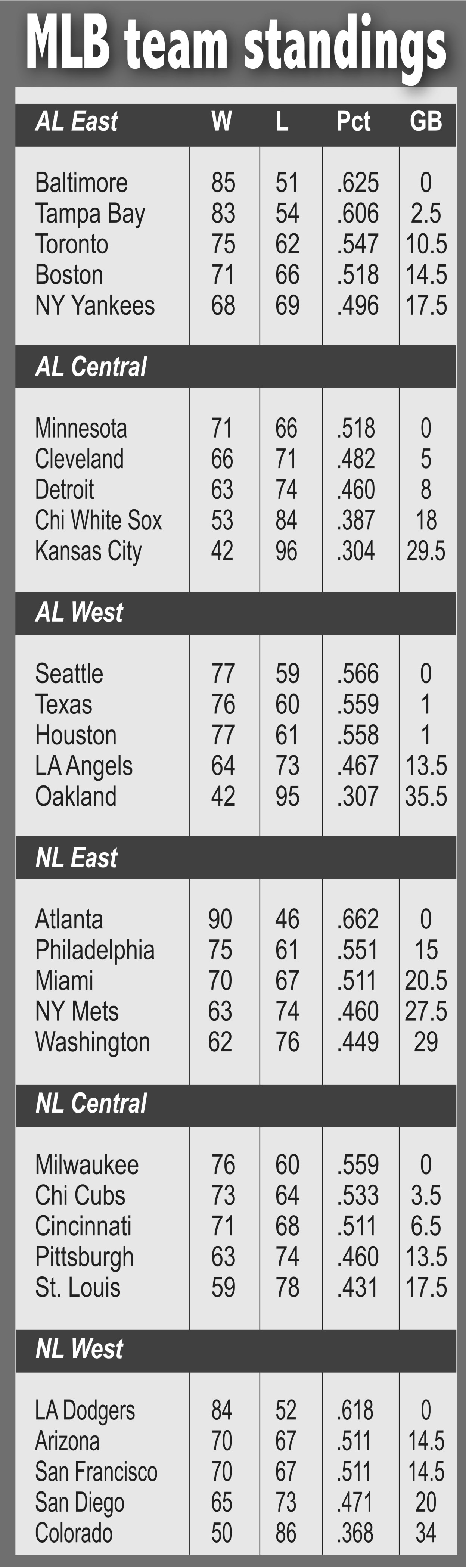 Miller (9-3) underlined his ace potential with this effort against the powerhouse Braves in his 17th career start. Less than four months after he made his major league debut with a solid victory in Atlanta, Miller challenged the majors’ top lineup again and thrived.