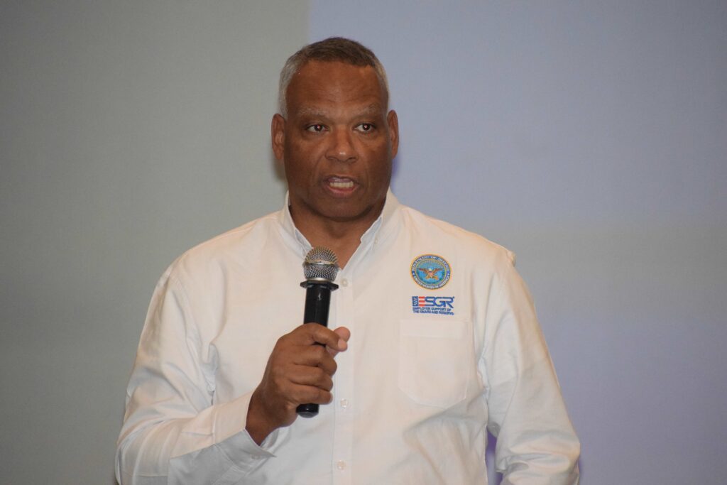 Michael Cruz, adjutant general of the Guam National Guard, delivers his keynote address.