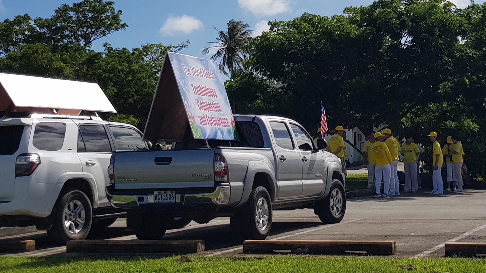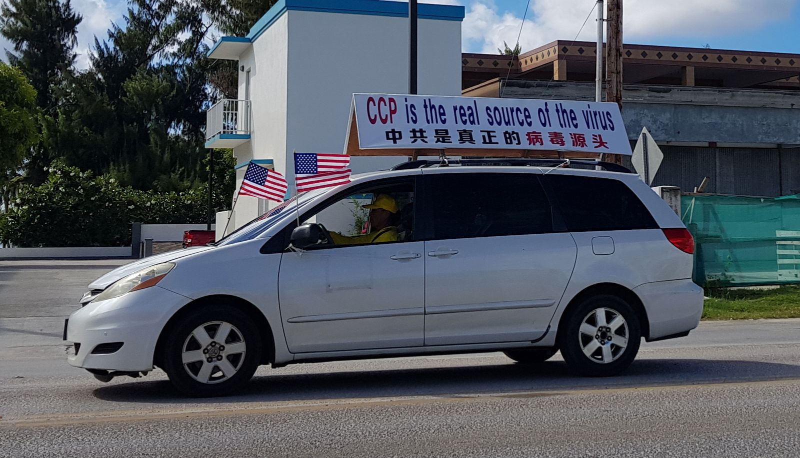 One of the 15 vehicles that participated in the Falun Dafa motorcade on Sunday is seen on Beach Road, Chalan Kanoa.