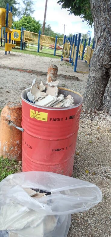 Broken tiles were dumped into a trash bin in the Civic Center area. Contributed photos