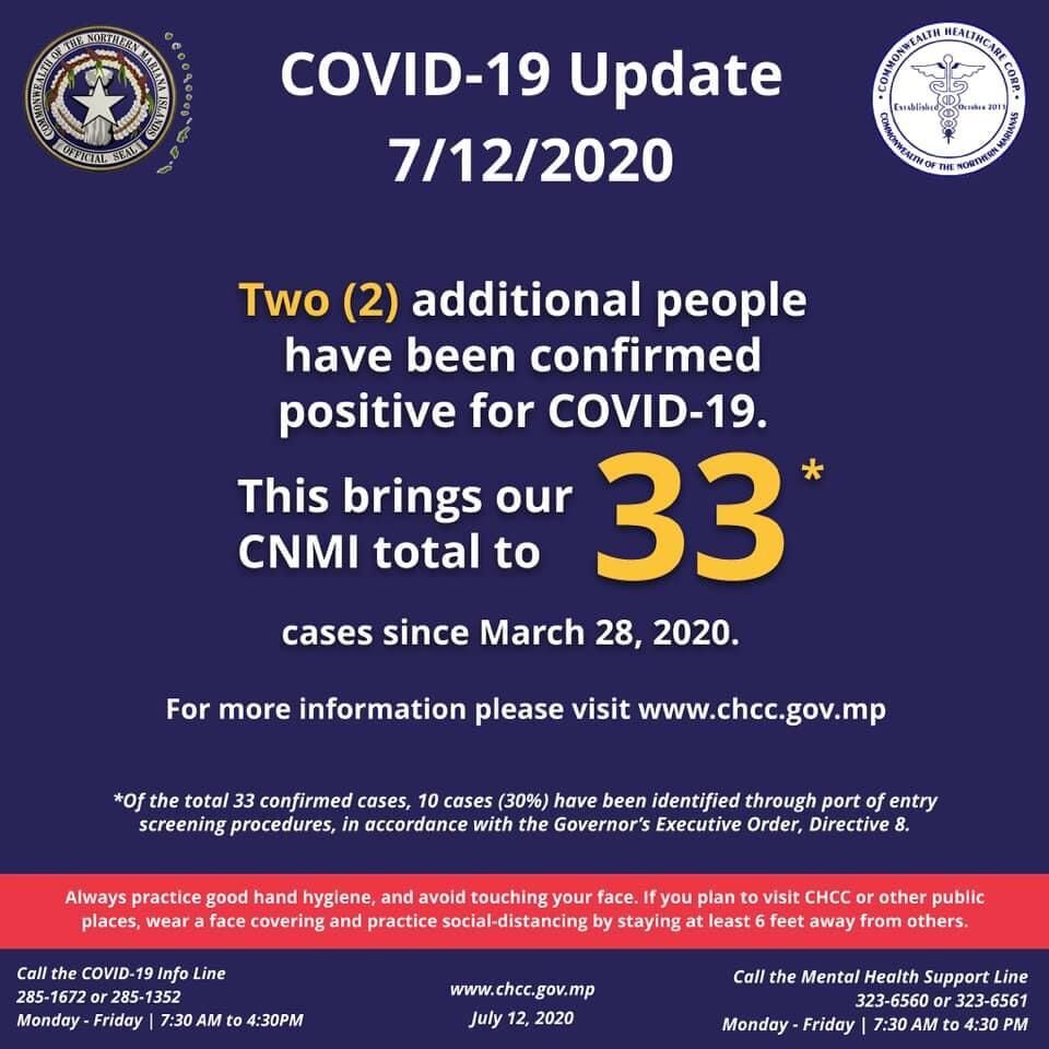 Through the Governor’s Task Force, many interventions are in place to protect the community from the spread of Covid-19 within the CNMI, and care for those who are diagnosed. The recent cases, identified through the CNMI Mandatory Declaration Form and Covid-19 testing required for all incoming international passengers, highlights the value of this border containment effort. Combined with immediate contact tracing, these interventions are key in minimizing the risk of exposure for Covid-19 to the community.