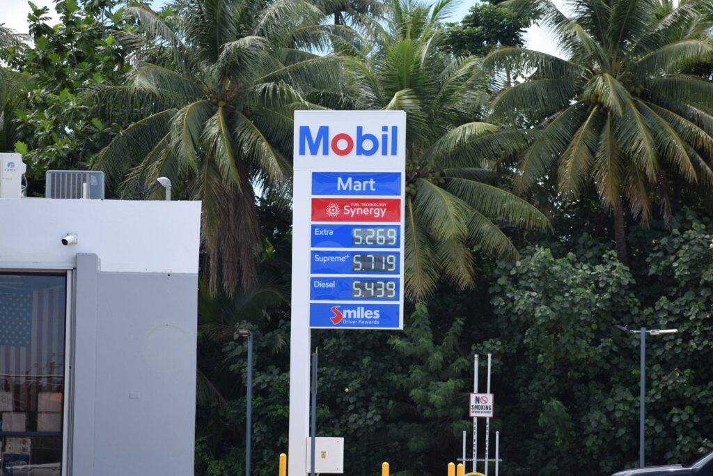 Mobil Oil Marianas in Chalan Kiya displays its new fuel prices on Saturday.