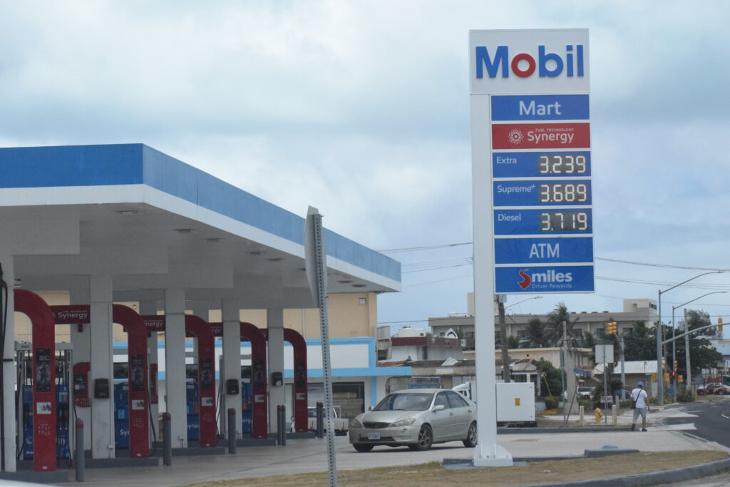 The Mobil Oil Marianas service station on Middle Road, Garapan displays the new fuel prices on Friday. Photo by Emmanuel T. Erediano