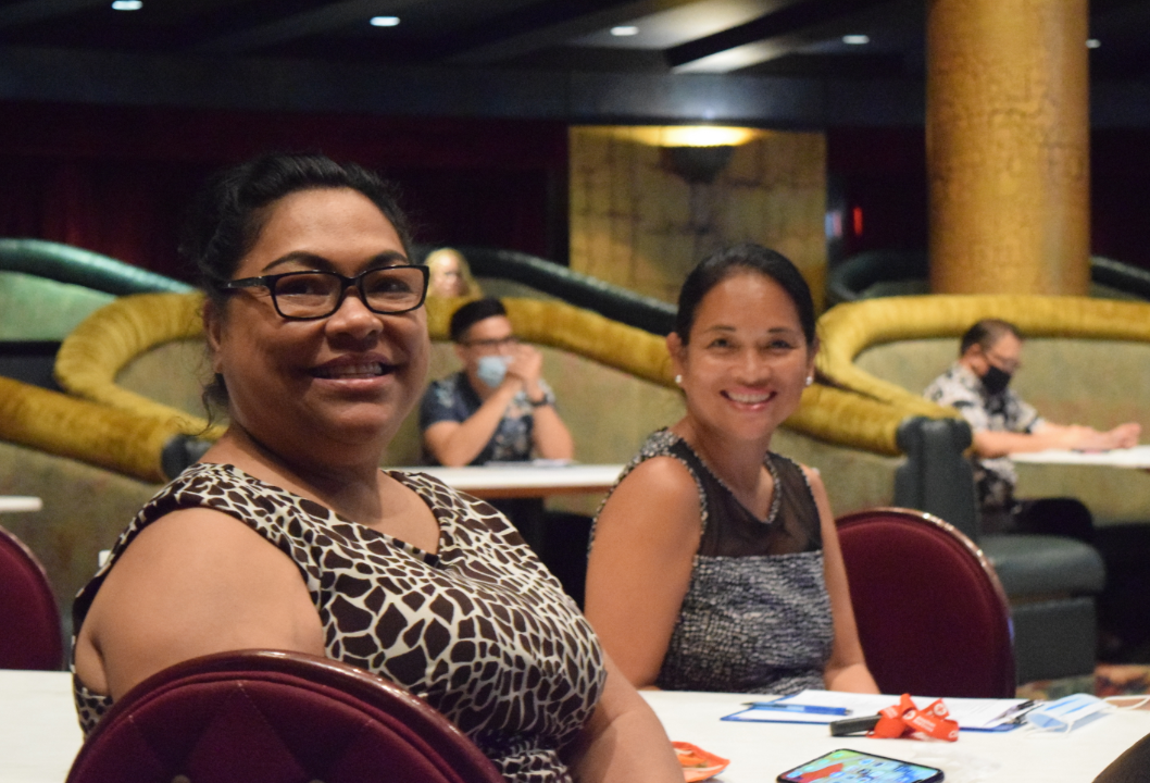 Saipan Chamber of Commerce president Velma Palacios, right, and Janice Tenorio of IT&E participate in a townhall meeting on Wednesday at the Hyatt. Photo by Emmanuel T. Erediano