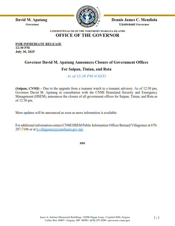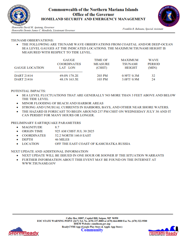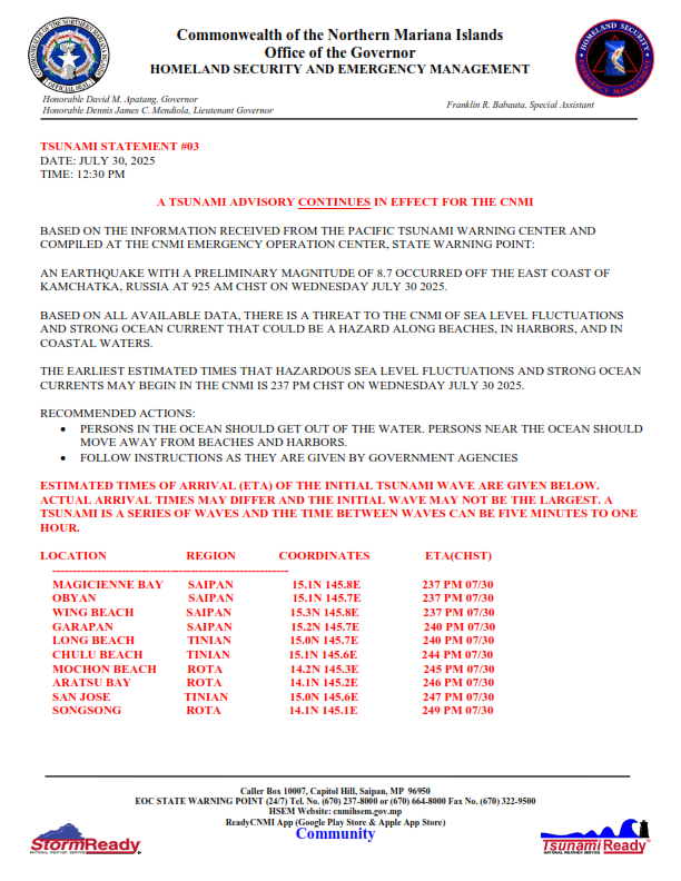 Tsunami Advisory Issued for CNMI