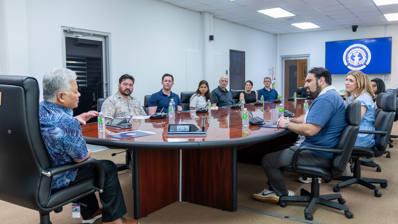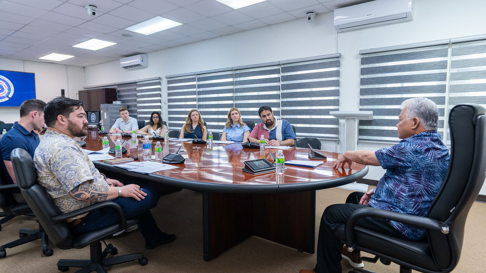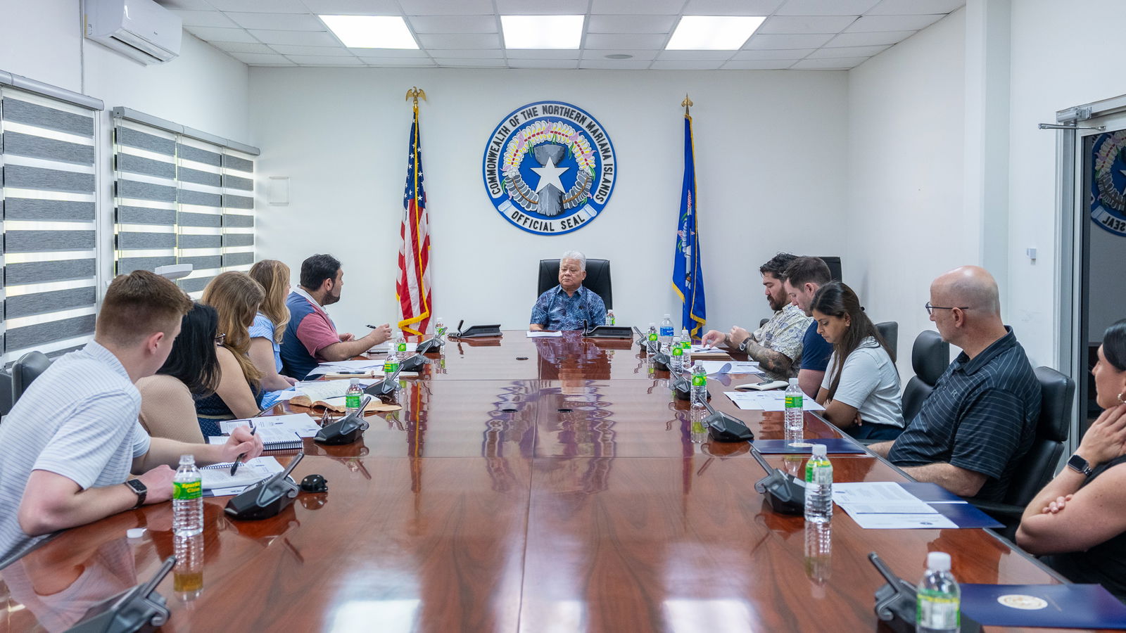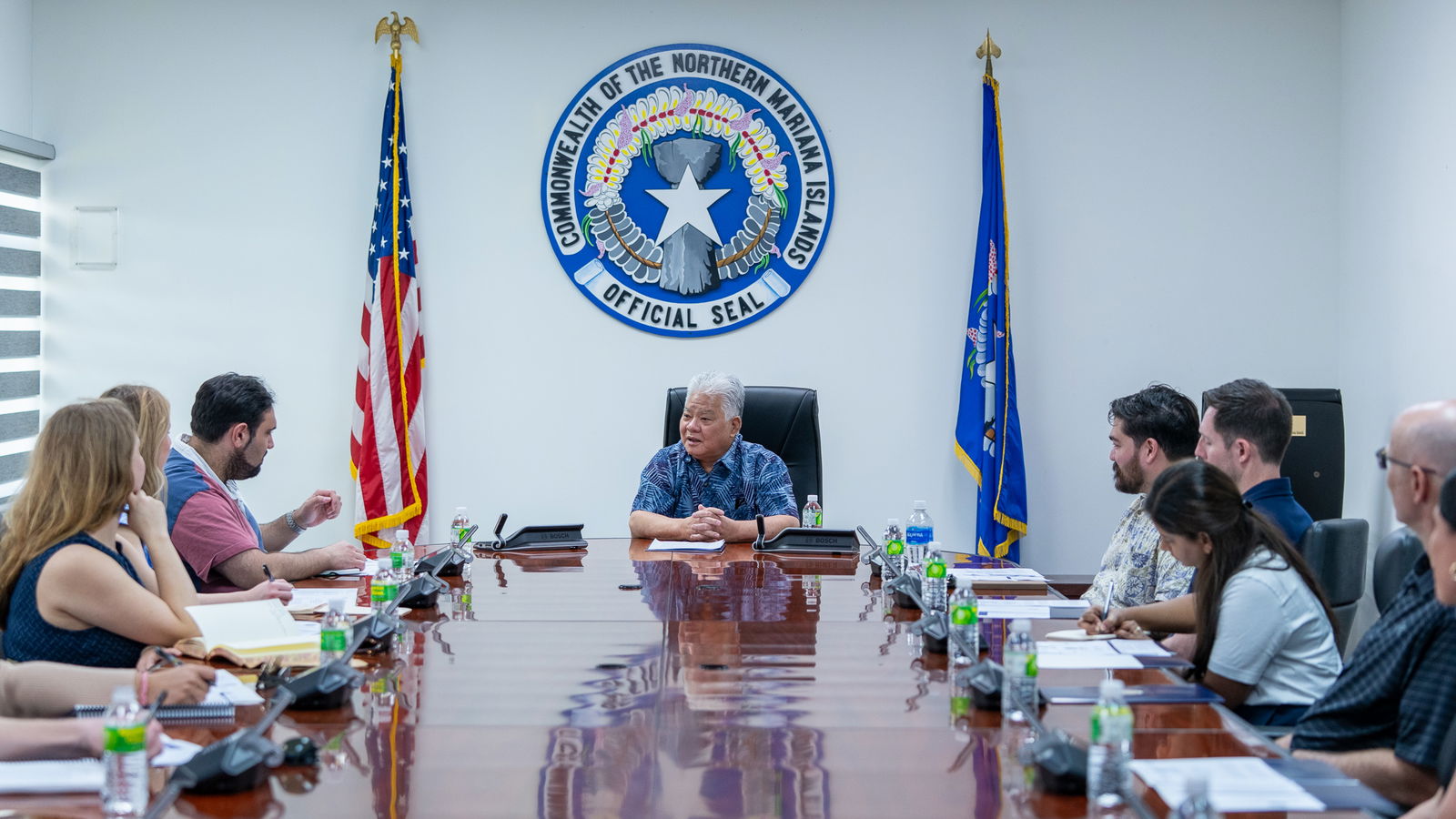 Governor Arnold I. Palacios on Tuesday morning met with a bipartisan congressional staff delegation from the United States Senate. During the meeting, he highlighted key CNMI priorities, including the resumption of 902 consultations, the restoration of Covenant funding, labor force challenges, and other economic support initiatives. The discussion also covered other vital issues, such as improving air connectivity, integrating CNMI businesses into the defense supply chain, and support for cabotage exemption, among other topics. During the discussion, Governor Palacios also stressed that economic, social, and fiscal stability of the CNMI is directly tied to the interests of national security and a free and open Indo-Pacific. He respectfully urged the staff delegation to help advocate for the CNMI and the region’s needs in Congress, emphasizing the importance of legislative support, funding, and resources to foster continued growth and sustainability.