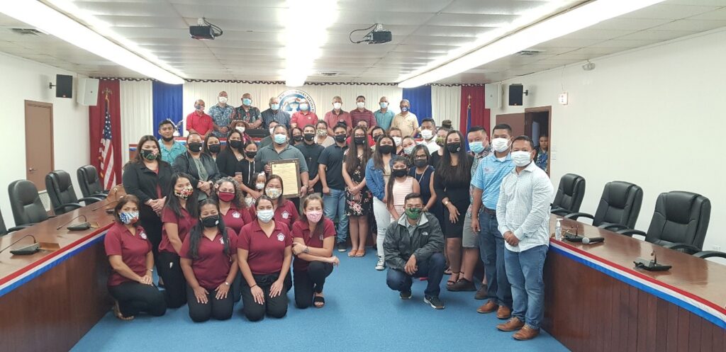 Members of the House of Representatives and the CNMI Scholarship Office team pose for a photo with the family of Rose Camacho, the former CSO administrator who passed away early this month. Photo by K-Andrea Evarose S. Limol