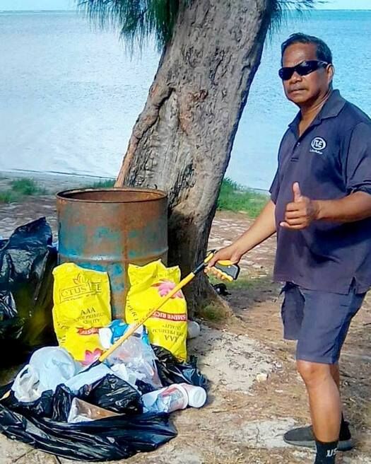 On Saturday, he collected 12 bags of trash at the Chalan Kanoa cemetery and Sugar Dock, and 27 bags of trash on Sunday at the beach.