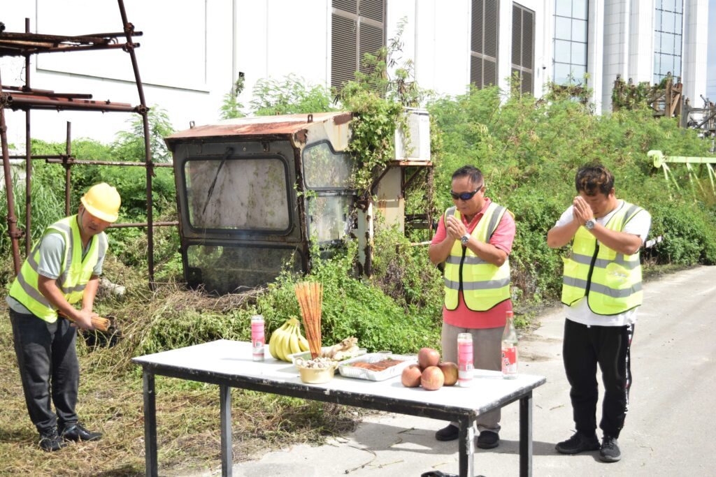Asked about the ritual they performed at the work site, Ocean Bee manager He Guo Qiang said they offered food, lit incense sticks, chanted a prayer, lighted firecrackers and burned paper signifying money to “chase away bad spirits.”