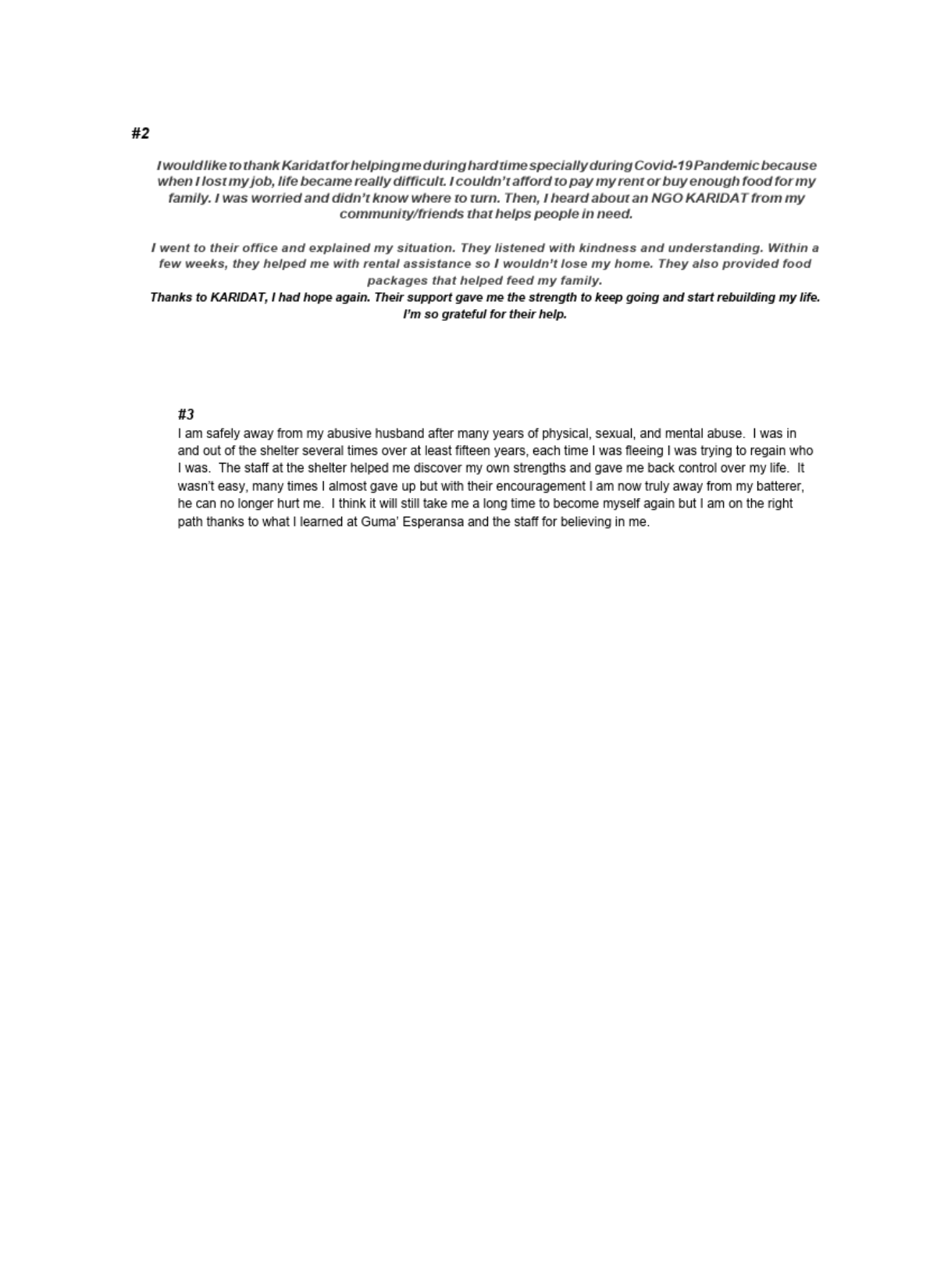Even collaboration has limits: “Karidat has a strong history of working with other nonprofits, and the local government has helped when needed—but we have not relied on them, preferring to utilize federal funds. Unfortunately, times are quite different now.”
