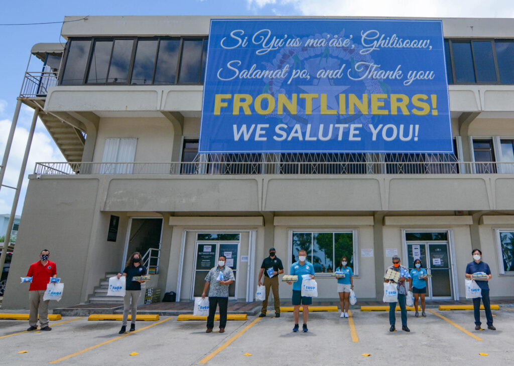 The Tan Siu Lin Foundation, the philanthropic arm of TanHoldings, donated 15,000 facemasks and 585 gift bags to the Commonwealth Healthcare Corp.’s Covid-19 front-liners on Wednesday. Gov. Ralph DLG Torres received the donation at the JP Center Building in Garapan. Also in photo are TanHoldings chief executive officer Jerry Tan, TSL Foundation executive director Merlie Tolentino and other TanHoldings executives. Contributed photo.