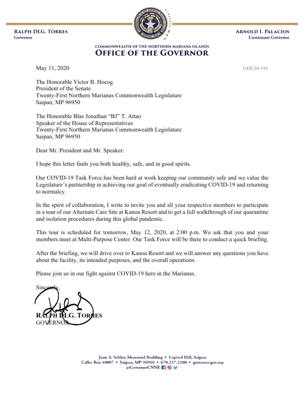 After taking a tour of the facility, Babauta said, “I am grateful for the opportunity to tour the facility. This alternative care site is going to be very essential as we move forward with our response to the virus, and so, I am grateful for the team here.”