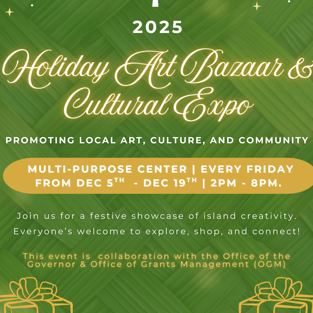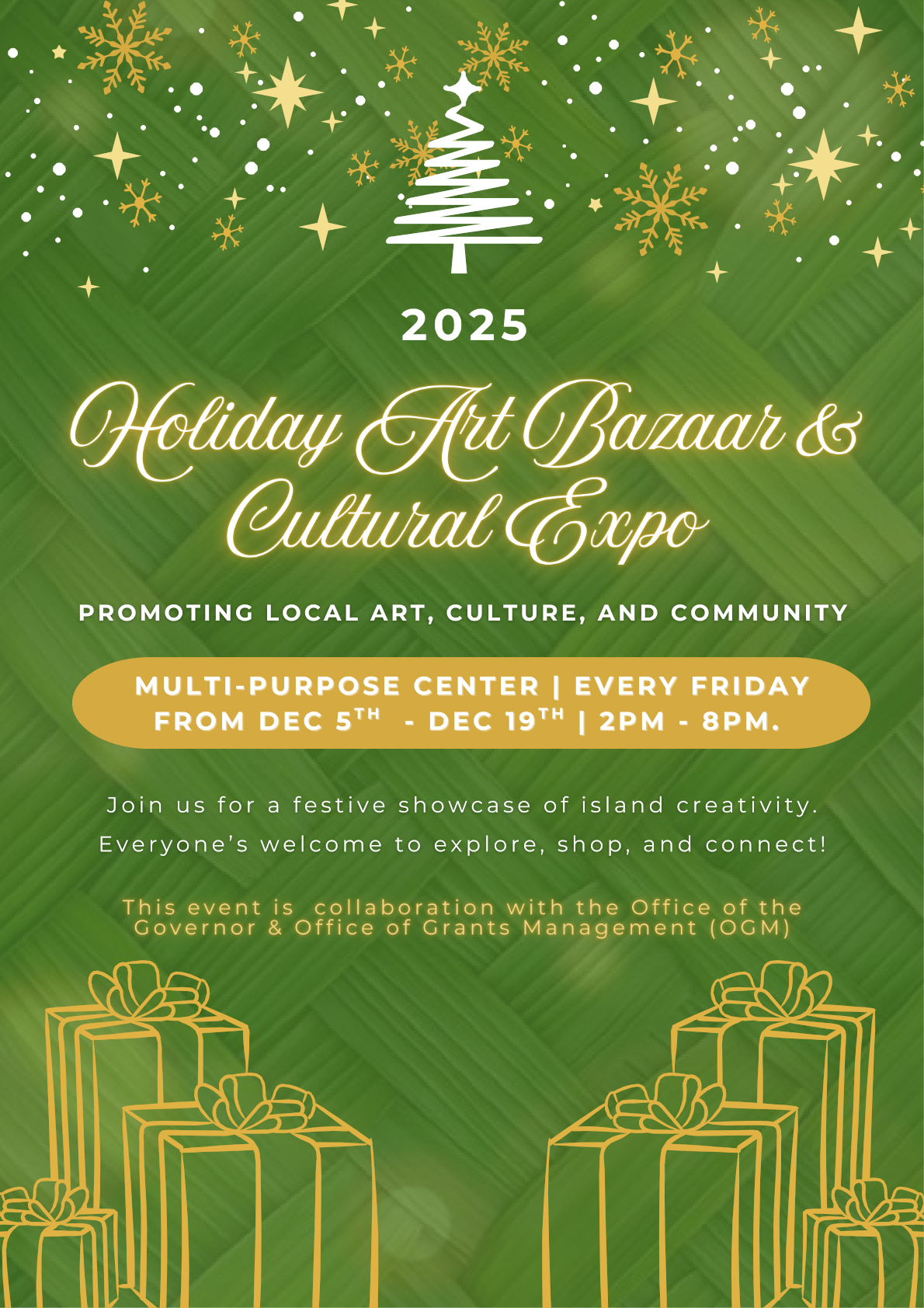 The 5th Annual Holiday Art Bazaar & Expo continues to strengthen creative entrepreneurship, celebrate cultural heritage, and provide meaningful opportunities for the public to support local artisans. Families, visitors, and community members are encouraged to join in the festivities, shop local, and experience the warmth and creativity of the CNMI holiday season.