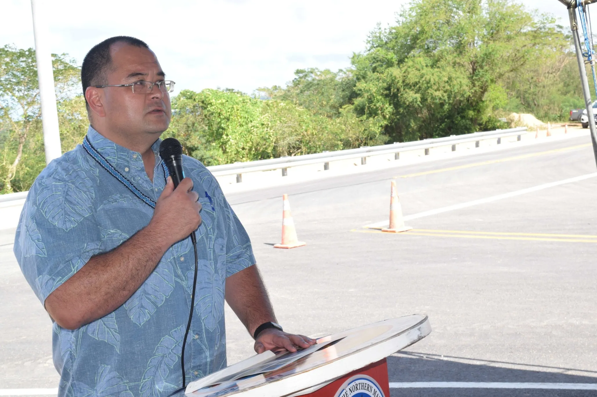 Department of Public Safety Commissioner Anthony Macaranas joked that years of driving on Naftan Road had kept his old car in the repair shop, but said drivers with new vehicles will now enjoy the improved roadway.