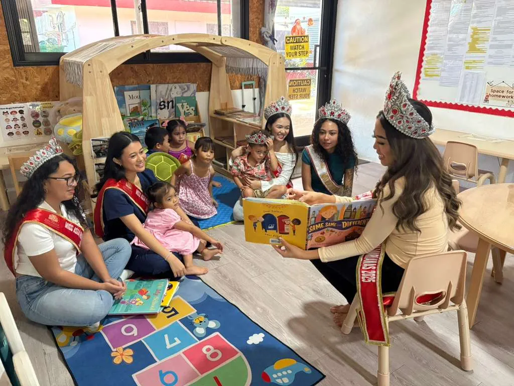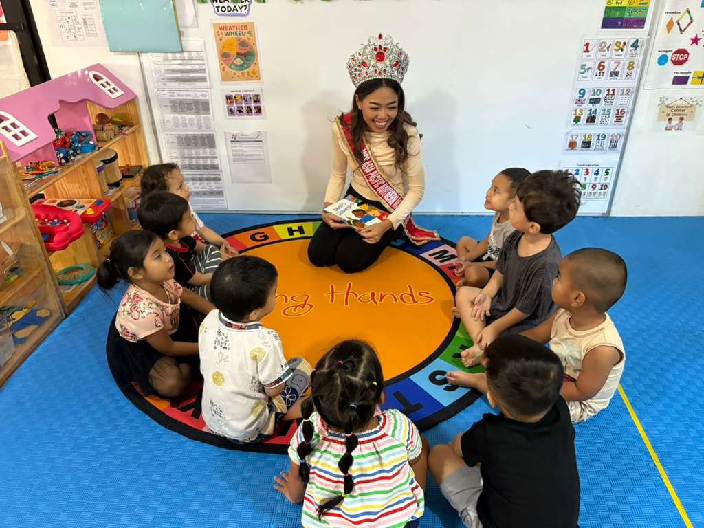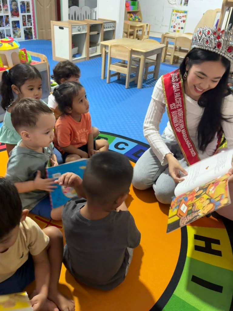MISS Asia-Pacific Northern Marianas Anne Rivera-Brownstein, along with members of her court, visited daycare children on Thursday last week to promote childhood literacy, leadership, and community service.