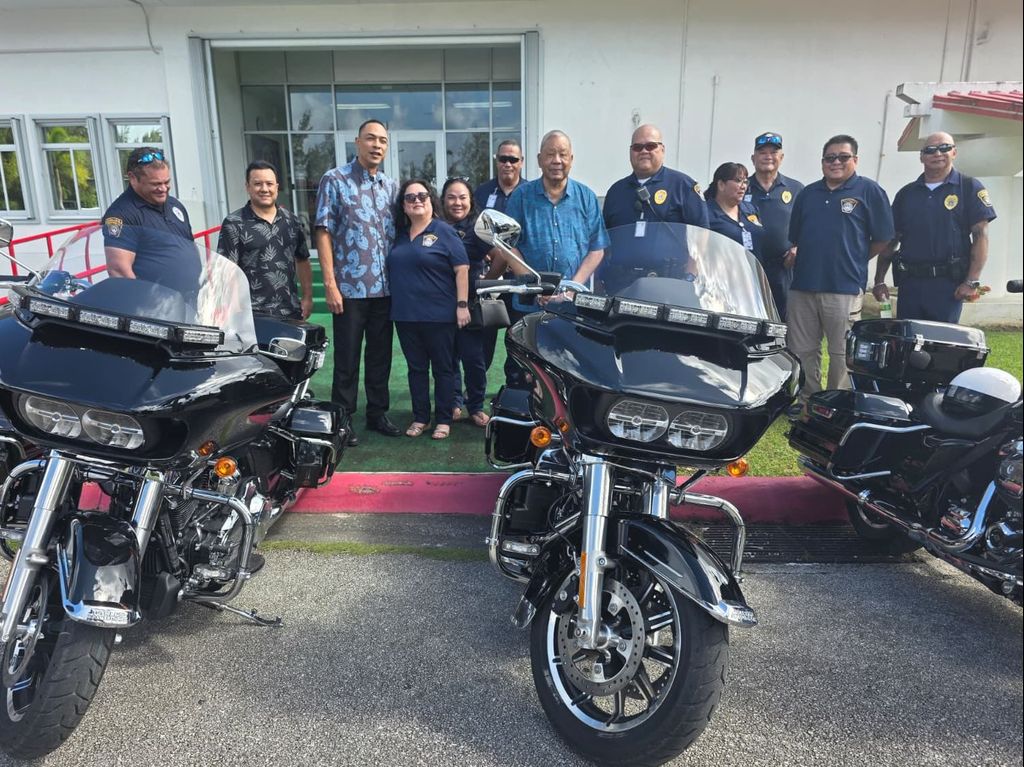Governor Apatang thanked FEMA for replacing the old and damaged motorcycles with new, high-performance Harley-Davidsons, saying the replacements will help DPS save on maintenance costs.