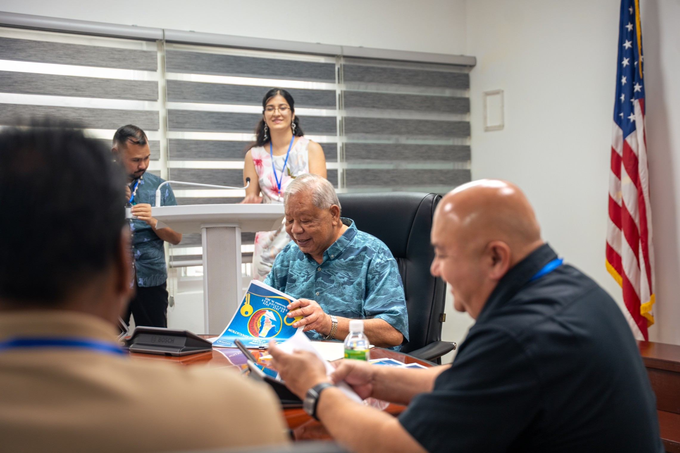 In attendance were leaders from PSS and the BOE, including Commissioner of Education Dr. Lawrence F. Camacho, Associate Commissioner of Education Eric Magofna, BOE Chair Aschumar Kodep Ogumoro-Uludong, BOE Vice Chair Anthony Dela Cruz Barcinas, BOE Teacher Representative Dr. Dora Miura, and BOE Student Representative Jude Burgos.