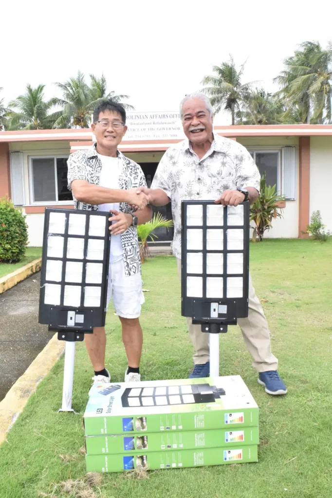 Jang, who owns Plumeria Steakhouse and Ete Cafe in Garapan, said he was pleased to donate the solar-powered lights as a neighbor and member of the community.