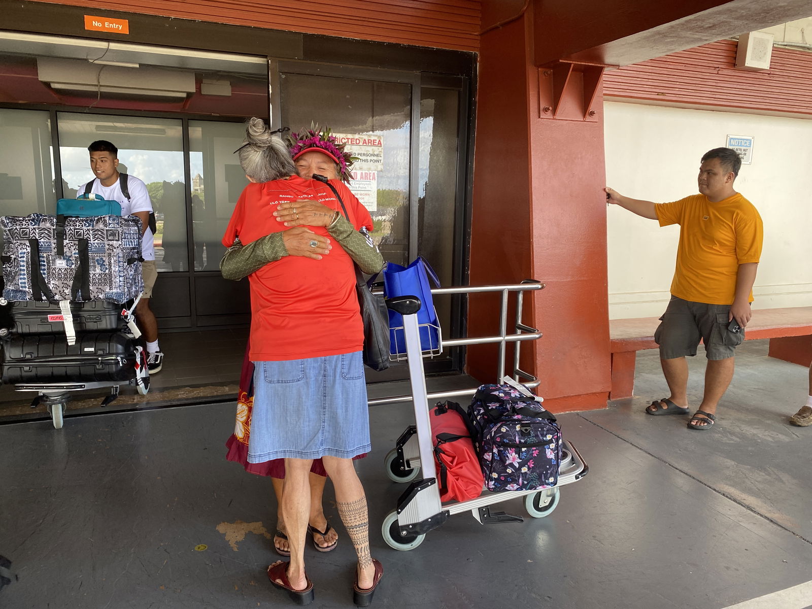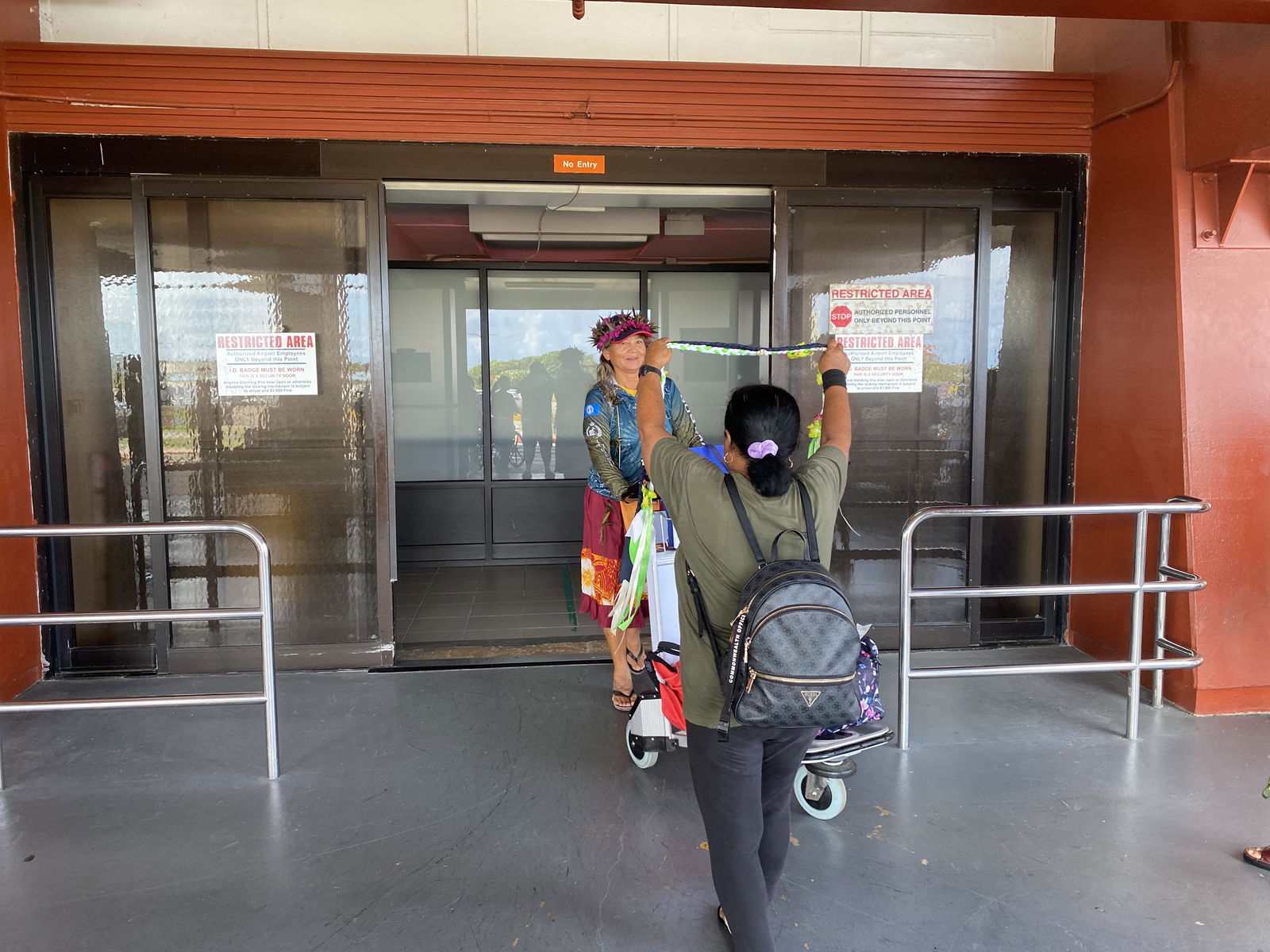 Andrea Carr is welcomed back home at the Saipan airport on Thursday, June 19, 2025 after completing her stint as a crew member of Alingano Maisu.