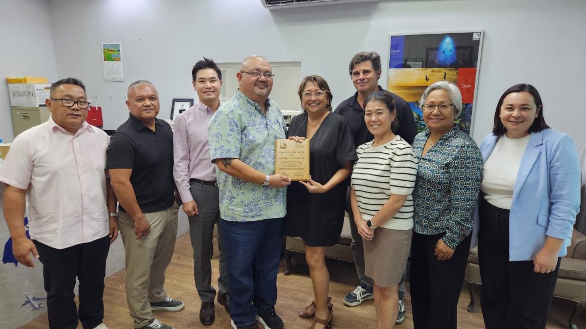 The Marianas Visitors Authority Board of Directors welcomed new officers and members at its board meeting on June 25, 2025, at the MVA office in I Liyan, Saipan, while also thanking outgoing Board Chairwoman Gloria Cavanagh for her nine years of service on the board. From left, Director Ivan Quichocho, Director Dwayne Maratita, Director Dennis Seo, Chairman Warren Villagomez, Cavanagh, Director Chris Nelson, Director Sachiko Gerrard, Vice Chairwoman Vicky Benavente, and Managing Director Jamika R. Taijeron. Not pictured are Secretary Joe Guerrero and Treasurer Marvin Deleon Guerrero.