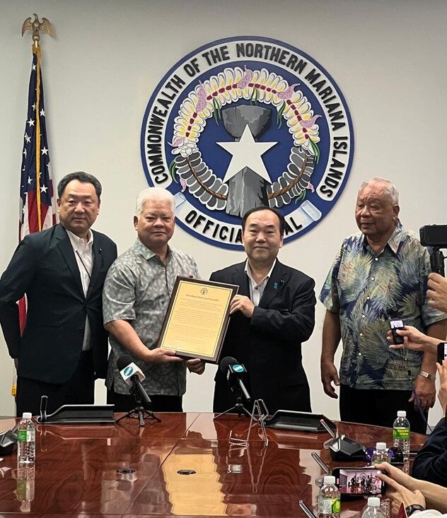 The government and business group was led by Chairman Takashi Nakamoto of the Hiroshima Prefectural Assembly and President Tetsuya Matsuda of Hiromaz Holding Co., an affiliate of Mazda Motor Corporation. During their visit, the group met with Governor Arnold I. Palacios, Saipan Mayor Ramon B. Camacho, Tinian Mayor Edwin Aldan and Tinian Municipal Councilmembers, and the MVA.