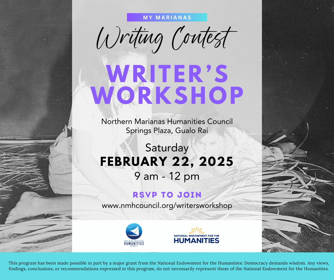 NORTHERN Marianas Humanities Council program coordinator Leeani Saralu invites interested high school students to register for the My Marianas Writing Contest writers’ workshop this Saturday, Feb. 22, from 9 a.m. to 12 noon at the council’s office at Springs Plaza in Gualo Rai.