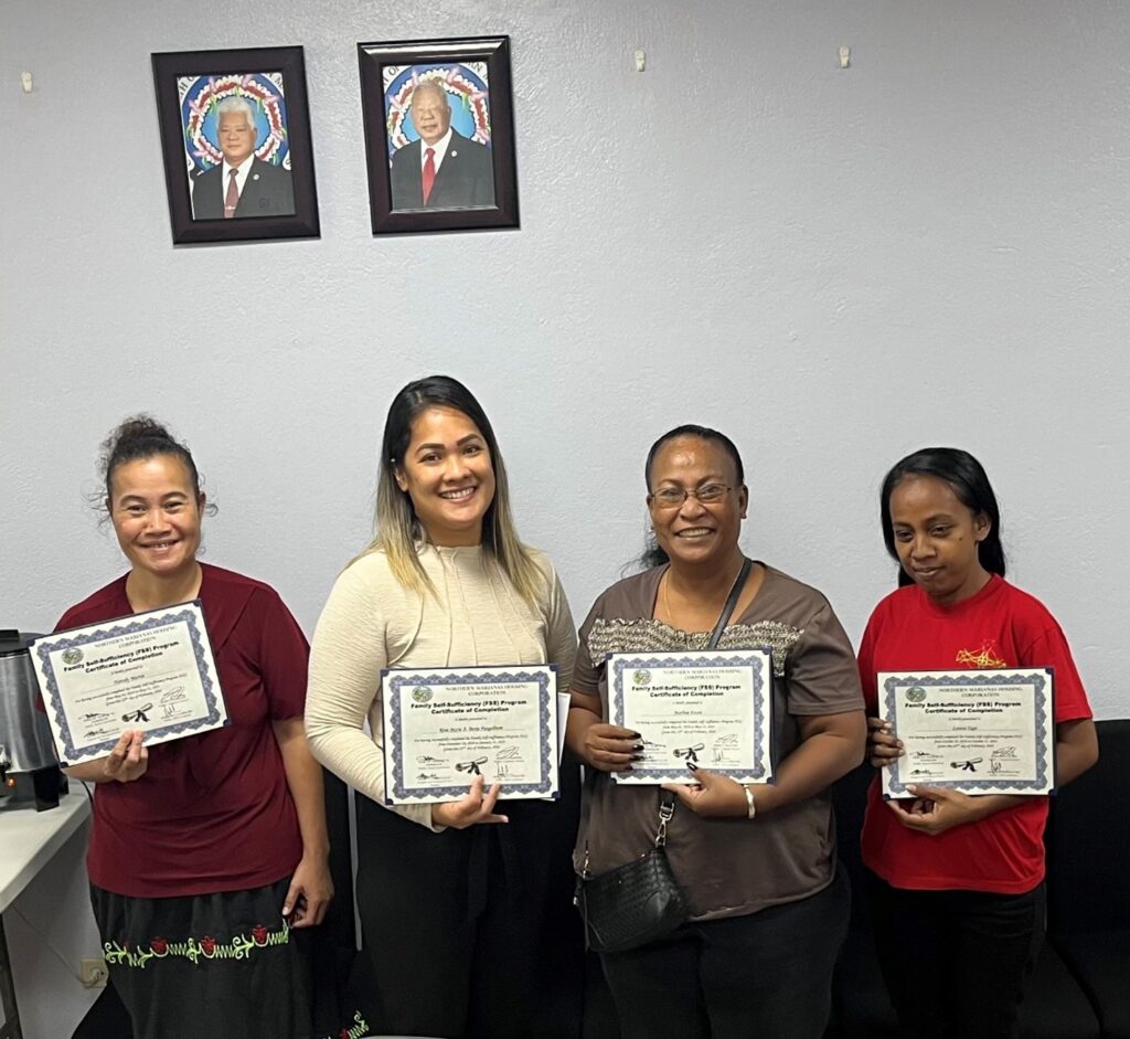 (Northern Marianas Housing Corporation) — On Feb. 22, 2024, NMHC’s Board of Directors, management, and staff, presented four graduates, Louisa L. Taga, Narcely Martin, Marline Anson, and Rose Marie A. Borja, Certificates of Completion under the NMHC’s Family Self-Sufficiency or FSS Program.