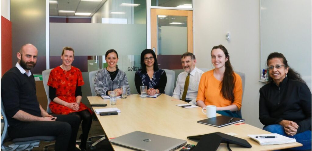 From left, Hamish  Stuart,  Sarah  Markley,  Nicole  Ayo  von  Thun,  Annie  Subactagin-Matto,  Colin  Morris and  Yashodha Jayawardhana. Photo courtesy of Chris Tse/PASAI