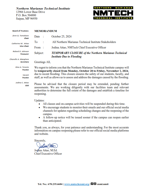 NMTI closed due to flooding