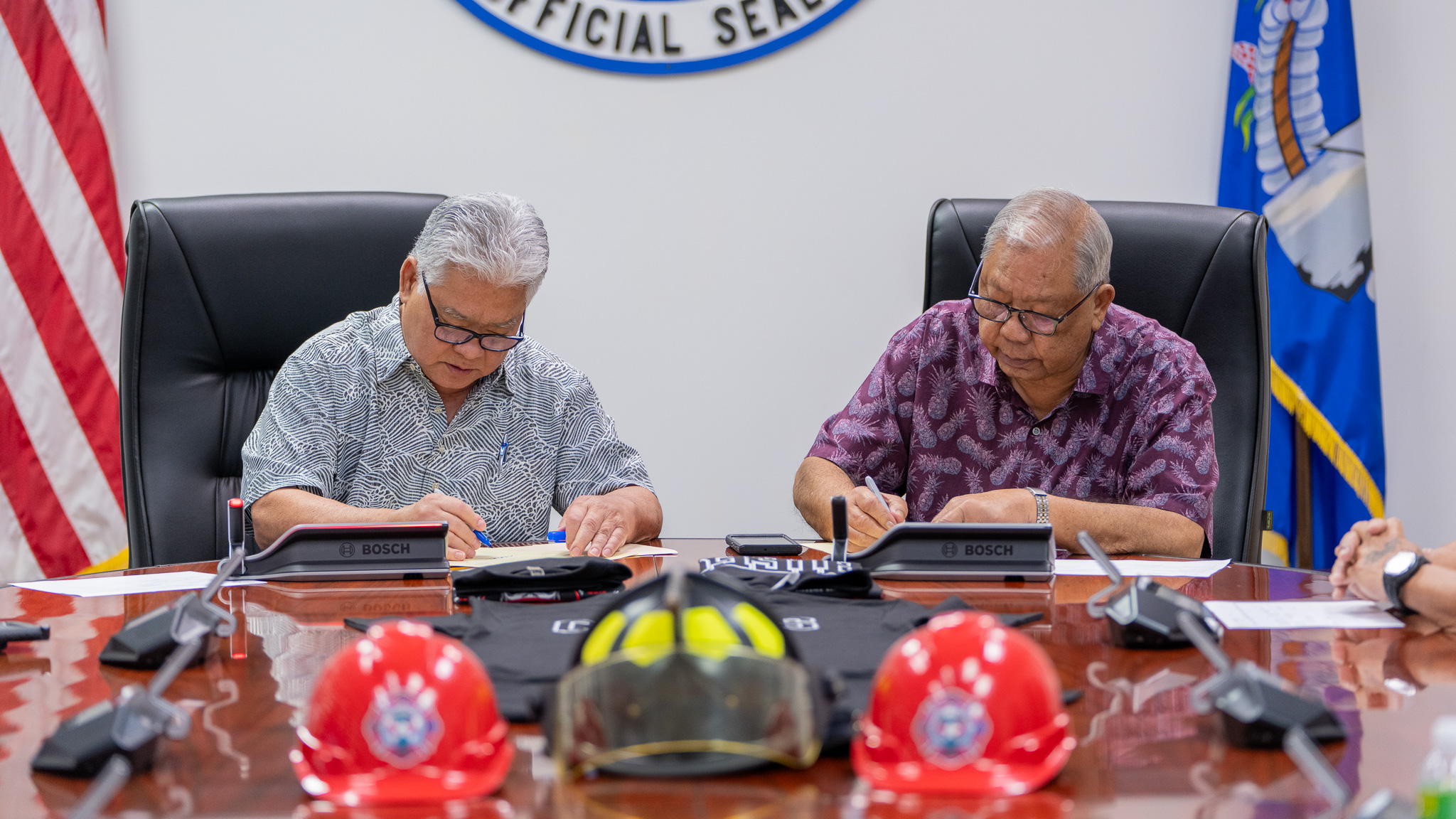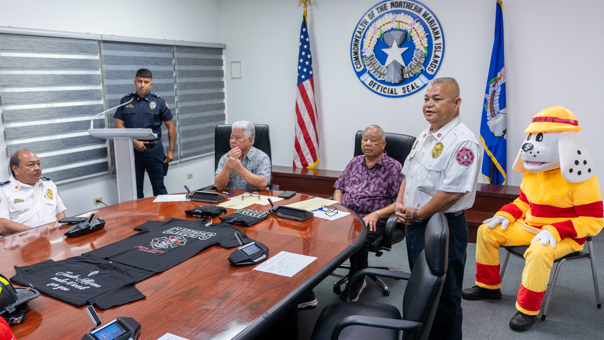 Governor Arnold I. Palacios and Lt. Governor David M. Apatang officially proclaimed the week of October 6–12, 2024, as Fire Prevention Week. The event was attended by the commissioner of the Department of Fire and Emergency Medical Services, Juan A. Pua, representatives from the American Red Cross – NMI Chapter, members of the Commonwealth Cancer Association, and local firefighters. Governor Palacios commended the tireless efforts of DFEMS and the American Red Cross in protecting the community from preventable disasters. He said while advanced fire prevention systems are becoming more accessible, it takes consistent human diligence to ensure they are properly inspected, maintained, and functioning at their best. Lt. Governor Apatang echoed these sentiments, adding that outreach efforts should prioritize vulnerable groups, including the manamko’ and individuals with special needs, to ensure their safety is not overlooked.